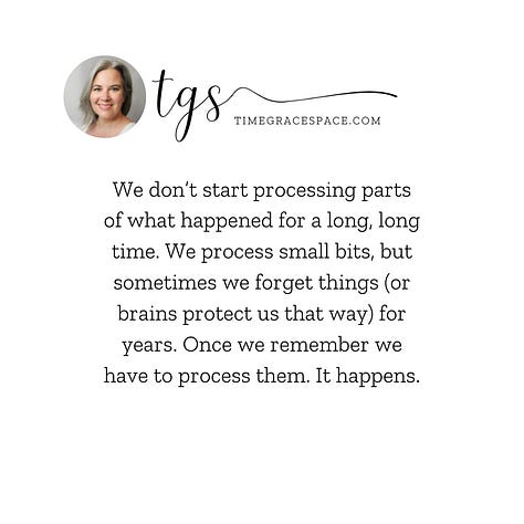 We don’t start processing parts of what happened for a long, long time. We process small bits, but sometimes we forget things (or brains protect us that way) for years. Once we remember we have to process them. It happens.