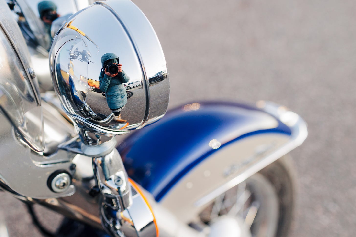I’m a photographer, so I work in reflections. This is a self-portrait of my reflection in the curved part of a motorcycle. If I looked at that and saw reality, I’d be thinking - HOLY I’m 2 feet tall and have huge hands (or something). Since I know how photography works, I know that the curved reflective surface creates a false image.